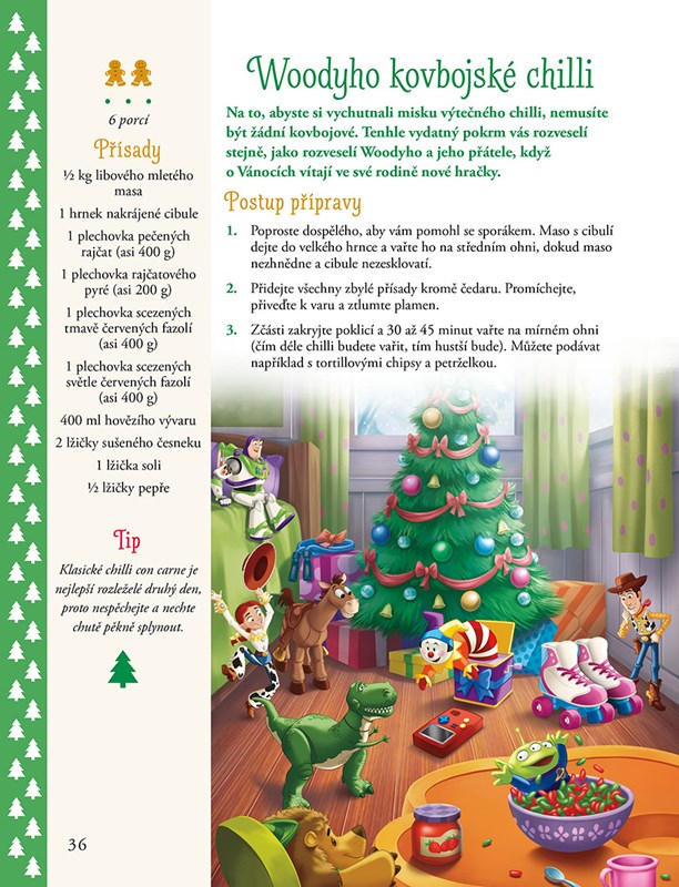 Jste připraveni na vánoční kouzla v kuchyni? Tyto zábavné a snadné recepty, kterými vás provedou vaši oblíbení hrdinové od Disneyho a Pixaru, se povedou i začínajícím kuchařům. Dozvíte se, jak připravit sváteční lahodné pokrmy – třeba Púovy medové šneky, Locičin pizzový cop, masové kuličky se špagetami podle Lady a Trampa, Woodyho kovbojské chilli nebo horkou čokoládu s hvězdičkovými maršmelouny ze Země Nezemě. Všechny recepty v této knize jsou chutné, zdravé i nutričně vyvážené a připravit je dovede vážně každý.