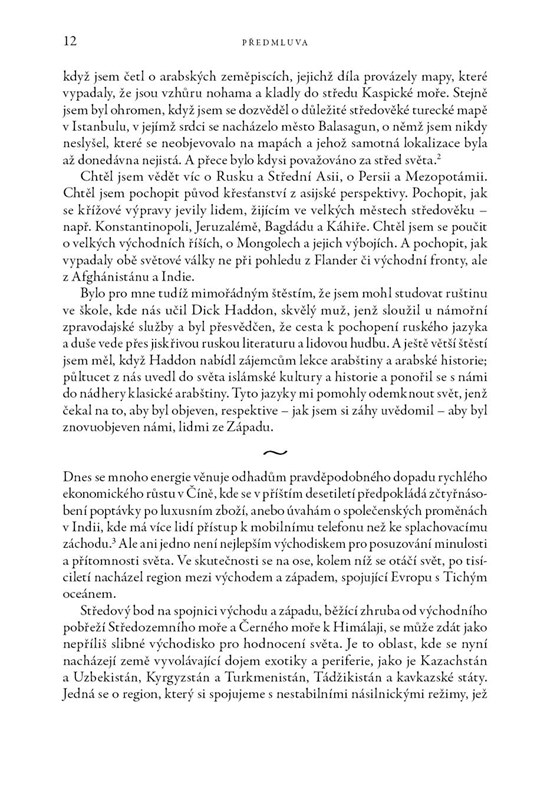 Kniha britského historika je novým pohledem na světové dějiny. Sleduje je z perspektivy „hedvábných cest“, spojujících země a kontinenty, a vytvářejících globální svět dávno před moderní dobou a érou zámořských objevů. Zaměřuje se zejména na euroasijský prostor, ve kterém probíhala živá výměna zboží, technických inovací myšlenek, náboženských idejí, uměleckých podnětů. Po těchto cestách přicházely pozitivní podněty, ale i ničivé, jako vpády kočovníků, zhoubné epidemie, otrokářství, náboženský fundamentalismus. Frankopan své čtivé podání světových dějin dovádí až do současnosti, sleduje hru světových velmocí z nezvyklé perspektivy „srdce světa“, asijských zemí podél tradiční hedvábné stezky. Frankopanova kniha se stala bestsellerem v mnoha zemích světa a prodalo se jí více než jeden a půl milionu výtisků.