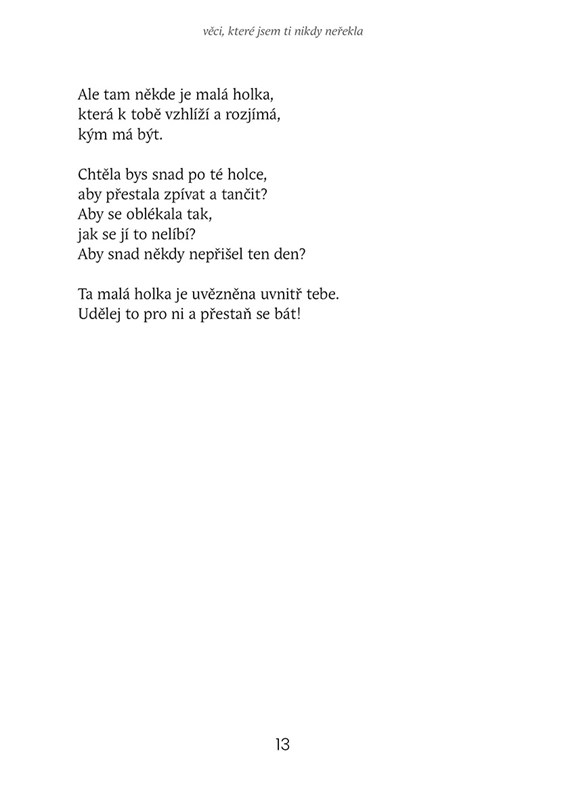 Intenzivní sbírka poezie o utrpení, lásce a ztrátě. Reflexe životních událostí před smrtí matky i po ní.