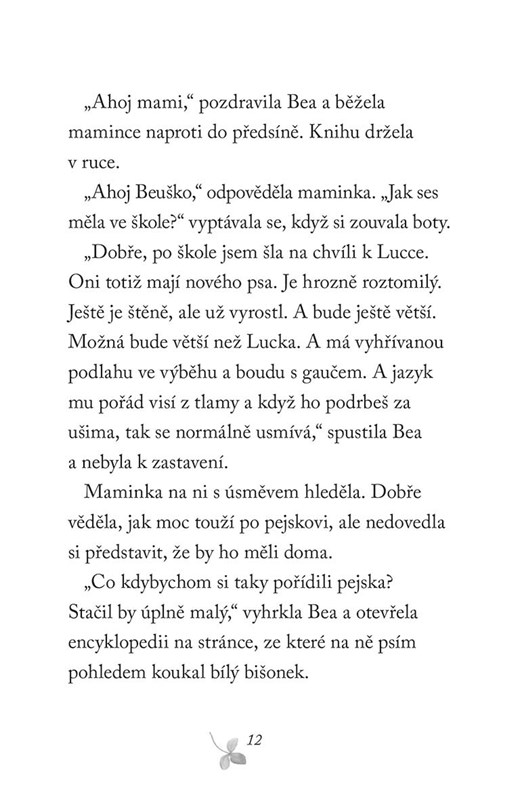 Když rodiče Beatce slíbí za samé jedničky a vzorné chování pejska, netuší, že holčička splní jejich dohodu do puntíku. Nezbývá než dodržet slovo, a tak se společně vydají do útulku. Potkají zde francouzského buldočka, jehož stará majitelka se o něj již nemůže starat. Bea se do něj hned zamiluje a vůbec ji neodradí, že pejsek má potíže s dýcháním a bude muset na operaci. To přece společně zvládnou!