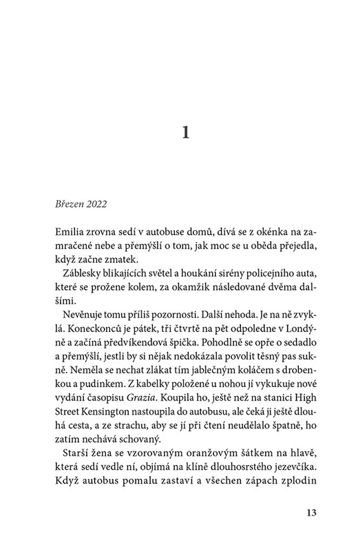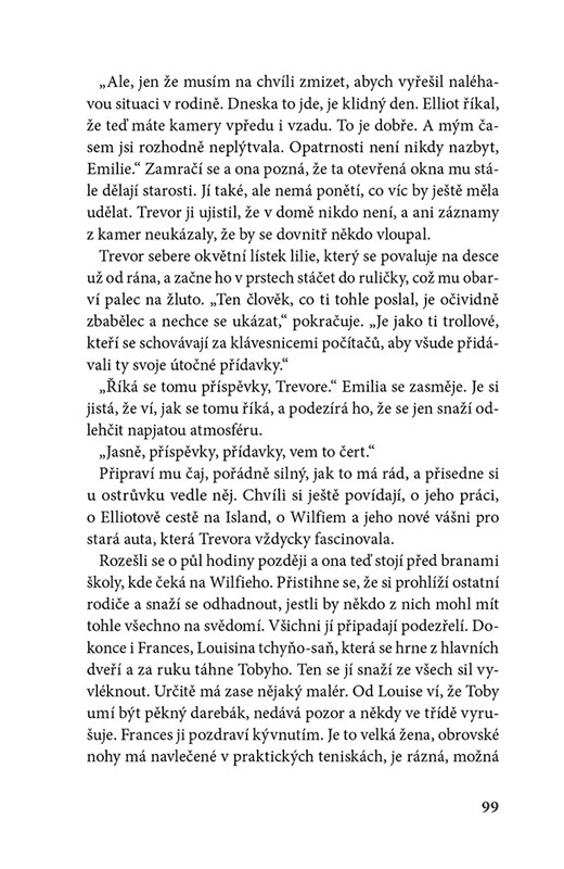 Emilia Wardová žije na poklidném předměstí Londýna. Na první pohled zcela obyčejná manželka a matka dvou dětí je ale slavná spisovatelka. Právě když píše desátý díl své detektivní série, nabere její život nečekané a nebezpečné obrátky: v realitě se totiž odehraje scéna z její knihy. A potom někdo zemře stejnou smrtí jako oběť v knize, kterou zrovna dokončuje. Proč jí tohle někdo dělá? Kdo může vědět, o čem píše? A jak dlouho potrvá, než pachatel zinscenuje finální zápletku jejího temného příběhu?