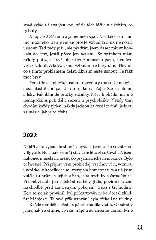 Deník jedné paranoidní schizofreničky – o tom, jak to chodí v psychiatrické nemocnici, o každodenních bojích, jako je třeba praní i o homeopatii a o tom, kdy a komu pomáhá.