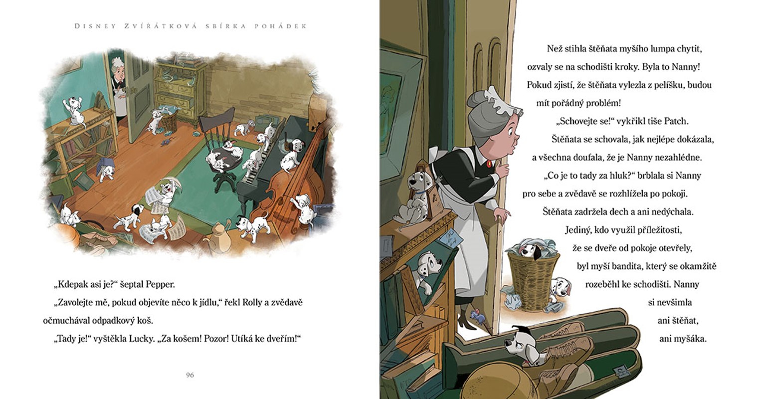 Popelka chce vykoupat kocoura Lucifera, Nala se Simbou pátrají po dokonalém doupěti, Dupík hledá kamaráda – a mnohem, mnohem víc. V osmnácti veselých příbězích, které navazují na známé filmy od Disneyho, na děti čekají staří i noví kamarádi. Malí čtenáři prožijí napínavé příběhy se zvířátky z Aristokoček, Pinocchia, Ledového království, Zootropolis, Ratatouille a dalších vyprávění. Hravá zvířecí dobrodružství právě začínají!