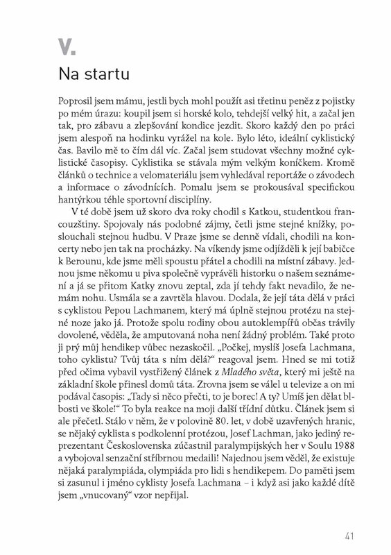 „Když jsem druhý den ráno otevřel oči, uvědomil jsem si, co se stalo. Nešlo o sen – přejelo mě auto, jsem v nemocnici! Podíval jsem se pod peřinu a zjistil jsem, že nemám nohu. Kus mi jí prostě chybí. Pod kolenem mám jen asi patnáct centimetrů torza v obinadlech, ze kterého koukají hadičky… Moje lítání, skákání a čutání je pryč. Svět se zastavil.“
