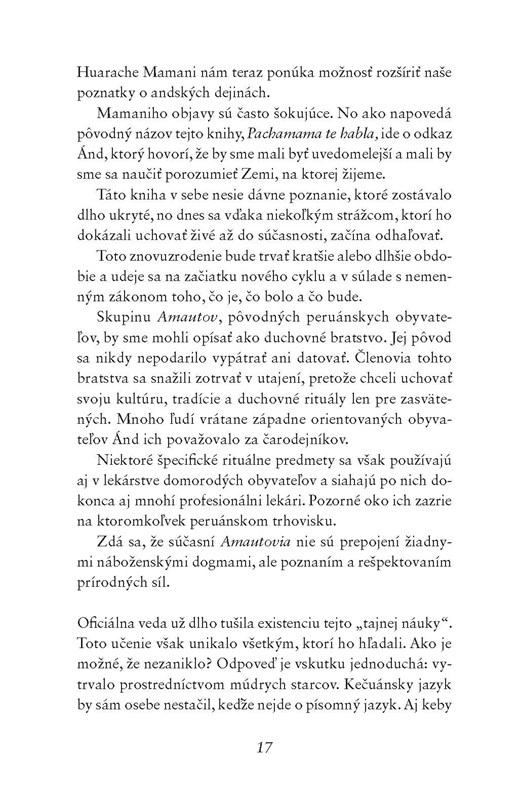 Hernán Huarache Mamani prežil veľkú časť svojho života ako obchodník v peruánskej Lime. Keď však vážne ochorel a tradičná medicína mu nedokázala pomôcť, vrátil sa do svojej rodnej dediny v Andách. Vďaka svojmu otcovi podstúpil prírodnú liečbu a absolvoval rituály, ktoré ho uzdravili a prinútili ho načúvať Matke Prírode. Pochopil, čo sa deje so Zemou, ako ju človek zraňuje, a že je nutné obrátiť sa späť k Pachamame, načúvať jej a dať sa viesť. Čo Mamani ďalej nájde na svojej spirituálnej ceste? Dedičstvo starovekých šamanských tradícií ožíva pod vedením kurander – žien zasväcujúcich nás do tajomstva ženskej sily, ktorá je podstatou všetkého a všetkých. Ich posolstvo hádam nikdy nebolo naliehavejšie a inšpiratívnejšie než v dnešnej turbulentnej dobe.