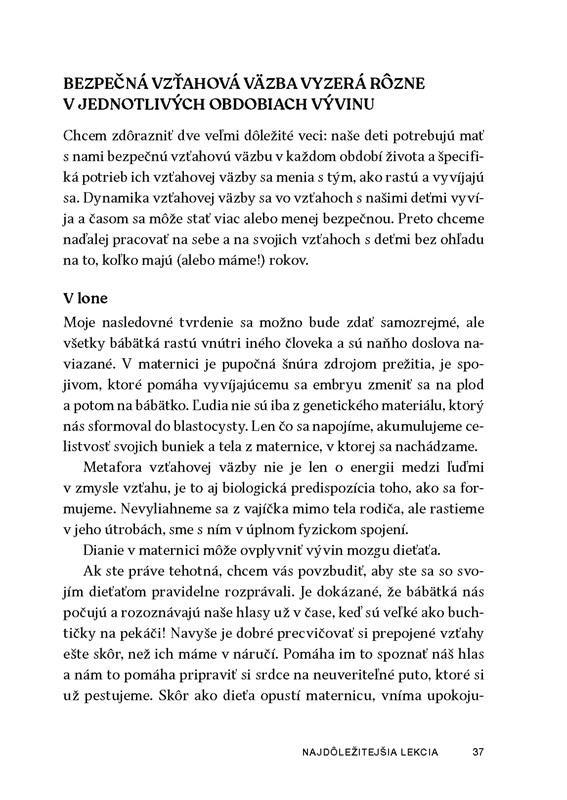 Autorka pomôže rodičom pochopiť typy vzťahovej väzby a ukáže im, ako tieto poznatky využijú na svojej vlastnej ceste za láskavým rodičovstvom.