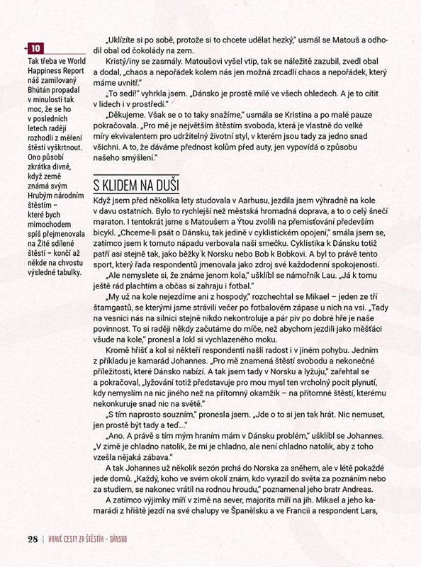 Zapomeňte na klasické cestopisy a průvodce. Tahle kniha není o tom, kam vyrazit na dovolenou, ale proč lidé v různých částech světa vnímají štěstí odlišně. Dánsko, Peru a Bali. Tři kontinenty. Tři kultury. Tři způsoby, jak proměnit život v umění být. Jak vypadá štěstí v zemi, kde se cení jednoduchost a pohoda? Jak tam, kde vyrůstá ze sounáležitosti? A co v krajině, kde se život měří harmonií, ne výkonem? Objevte s námi cesty hravých možností. Protože štěstí není destinací, ale způsobem, jak a kam kráčíme.