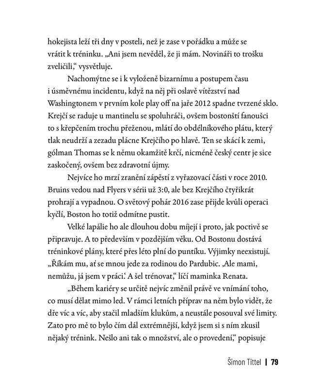 Tato kniha není jen o číslech a statistikách, ale především o cestě, která začala na šternberském zimním stadionu a vedla až na vrchol NHL. Od dramatického draftu přes slavné sezony v dresu Boston Bruins až po návrat do české extraligy a rozloučení s profesionální kariérou. Příběh Davida Krejčího je plný odhodlání, pokory a silných momentů.