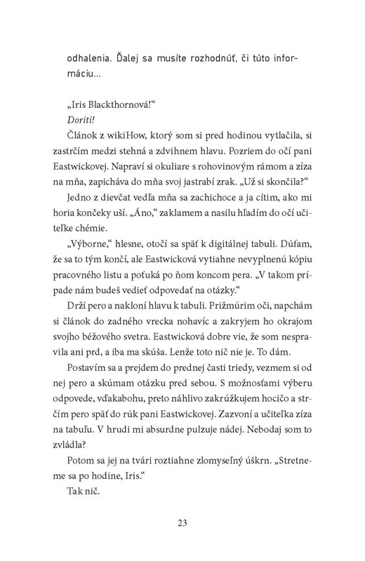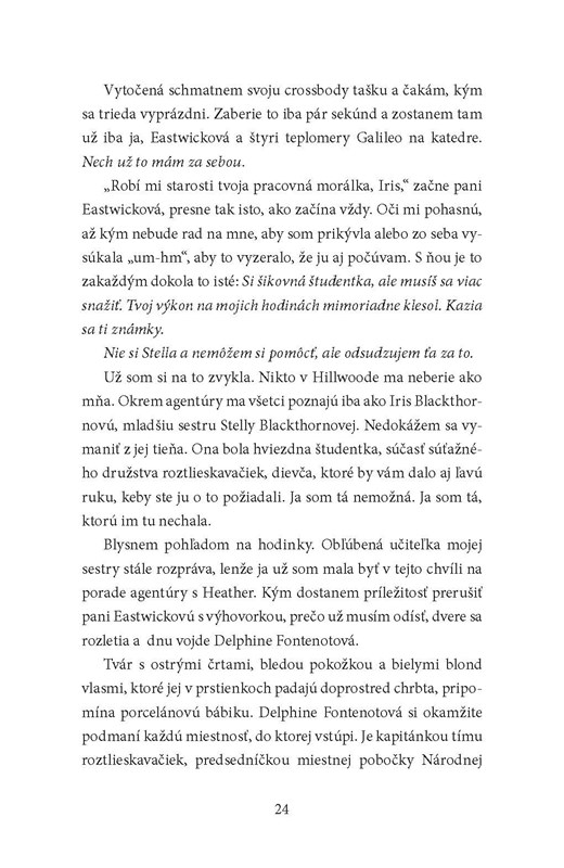 Pred rokom bez stopy zmizla milovaná roztlieskavačka Stella Blackthornová. Jej mladšia sestra Iris, zdrvená touto stratou, sa púšťa do vyšetrovania na vlastnú päsť. Zmarí však jedinú stopu polície a dostane prísne varovanie: po dovŕšení osemnástych narodenín by ju ďalšie zasahovanie do vyšetrovania mohlo dostať priamo do väzenia.