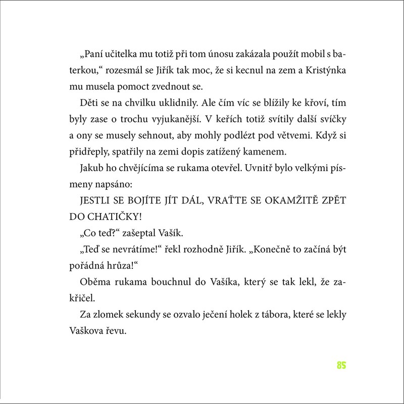 Kristýnka a Jakub jsou dvojčata a před časem nastoupila do první třídy. Kristýnka má obvykle hotový úkol dřív, než najde Kubík tužku na dně batohu, ale běží-li se závod na trati, je v cíli bezpečně dřív Kuba. Zkrátka každý umí něco jiného. Teď je však čeká první školní výlet a rovnou na tři dny s přespáním. Všichni se těší, ale někteří mají obavy. Největší dobrodružství však zažije školní parta při noční bojovce, kdy se dokonce ztratí i samotná paní učitelka...