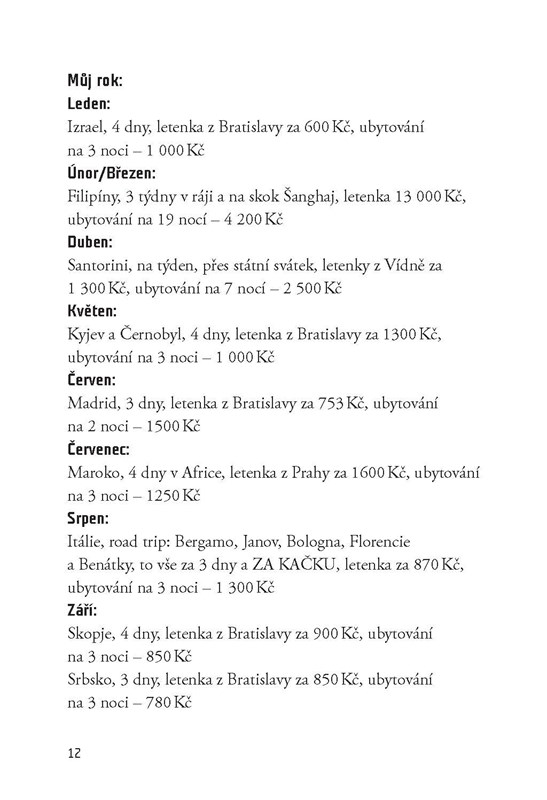 Cestovat doslova za kačku? Kdo by o to nestál… Ovšem málokdo ví, jak na to. Inspirujte se tipy zkušené cestovatelky Kateřiny Ostré, která navštívila desítky zemí - vždy s minimálním rozpočtem, zato s maximálními zážitky. Oblíbená autorka internetových cestopisů konečně popsala své zážitky i v knize a přidala spoustu zajímavých triků a rad, jak neplatit zbytečně moc, a přitom si poznávání světa dokonale užít. Provede vás oblíbenými turistickými destinacemi - marockou Marrakéší, ledovým Islandem, řeckým souostrovím Santorini, portugalskou Madeirou, exotickou Nikaraguou nebo neodolatelnou Kostarikou. A překvapení na závěr vás nemine… Tak kam vyrazíte o dovolené? Zkuste to ještě letos – máte na to!
