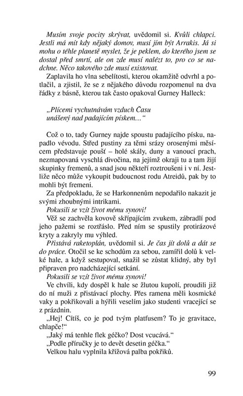 Pátý díl slavné ságy o písečné planetě líčí boj o planetu Arrakis, o zázračné koření a především o m...
