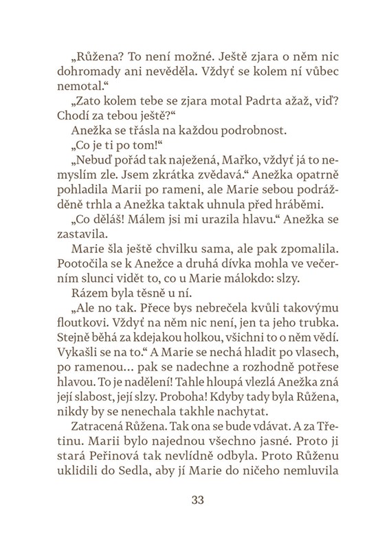 Postupné rozkrývání životních osudů ženy, kterou vnoučata a široká rodina znají jen jako „zlou babičku“. Vyprávění pokrývá časové období 1870–1947 a popisuje nelehké dětství děvčete, které vyrůstá v chudých poměrech na venkově jen s otcem, dále svatbu a soužití s vytouženým mužem, z něhož se vyklube nespolehlivý opilec, dramatické osudy tohoto páru a jejich dětí za první a druhé světové války až k těm vnoučatům, která už vidí jen nepřístupnou a nemilosrdnou stařenu.