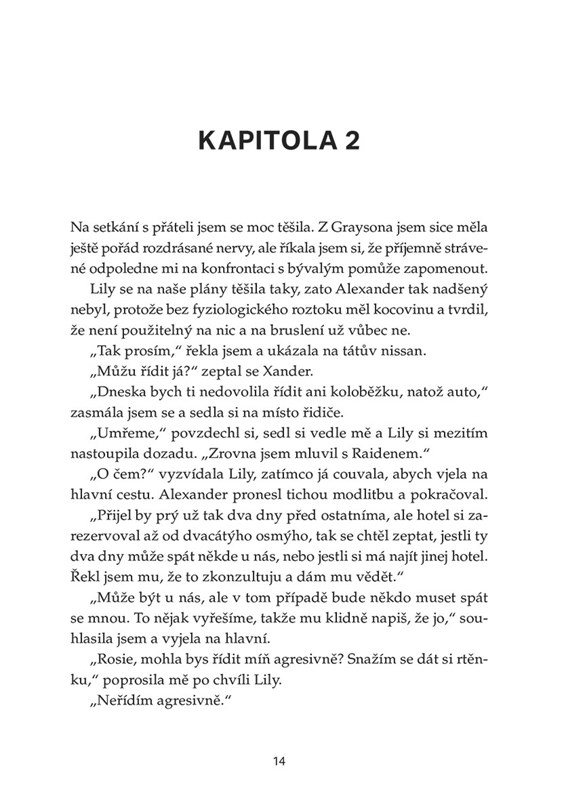 Rosanna je naprosto rozervaná. Ví, že Graysonovi už důvěřovat nemůže, ale když se dozví o jeho minulosti, začíná pochybovat. K Zaydenovi sice cítí něco víc, jenže se zdá, že mu víc záleží na jeho expřítelkyni Sophii. A jako by toho nebylo málo, Zaydenův otec je víc než jen hrozba. Rosanna neví, komu věřit – a jestli vůbec může věřit sobě. Kde je pro ni místo v nebezpečné hře, kterou Zayden se svým otcem rozehrál? Opravdu k ní chová hluboké city, nebo ji chce jen využít, aby zachránil sebe a svého bratra?