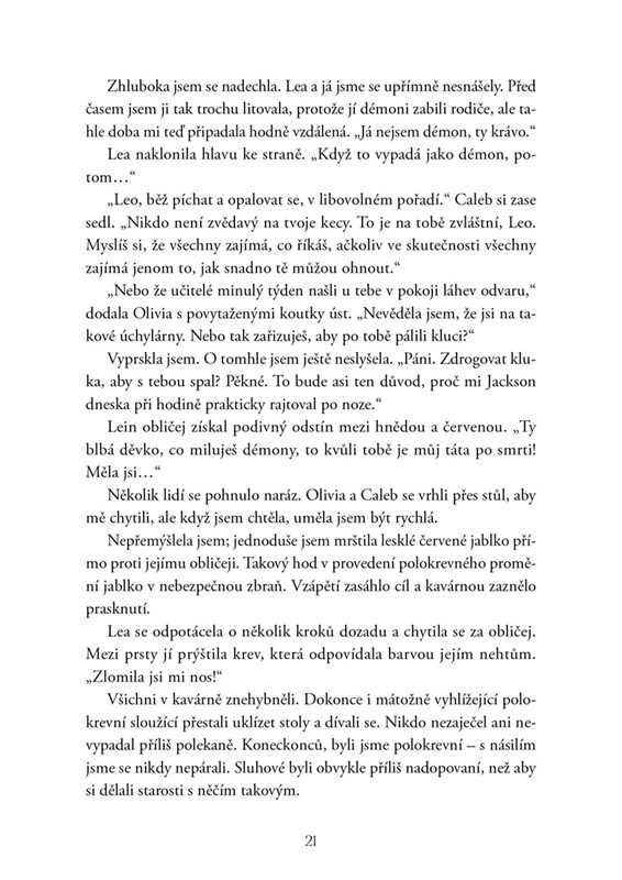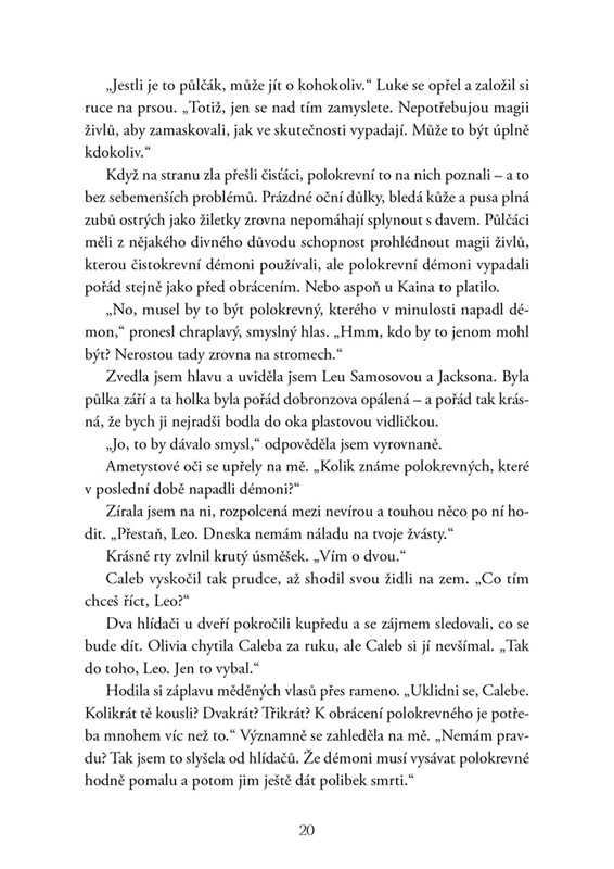 Alexandria je předurčená k tomu, aby se stala nadpřirozeným elektrickým zřídlem. Není to žádná výhra – zvlášť když je její drahá polovička takřka všude, kam se hne. Její propojení se Sethem má i své výhody, ale nedokáže ovlivnit to, co Alex cítí k čistokrevnému Aidenovi. Když do Konventu proniknou démoni a zaútočí na studenty, objeví se fúrie, aby eliminovaly jakoukoli hrozbu… včetně apollyona a Alex. Když jsou v tom zapleteni bohové, některá rozhodnutí prostě nelze vzít zpět.