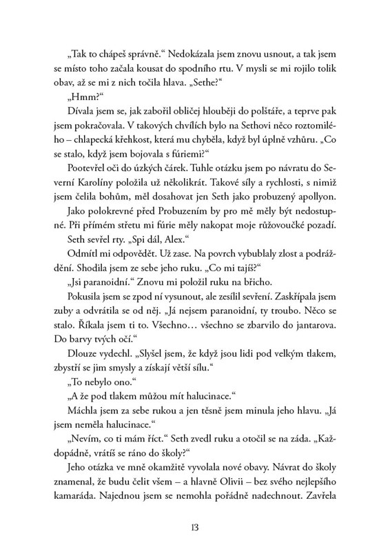 Alexandria netuší, zda se dožije svých osmnáctých narozenin – svého Probuzení. Dávno zapomenutý fanatický řád ji chce zabít, a pokud Rada někdy zjistí, co udělala v Catskills, je s ní konec… a s Aidenem také. Každé blízké setkání se Sethem ji navíc přibližuje k Probuzení dřív, než bylo v plánu.
