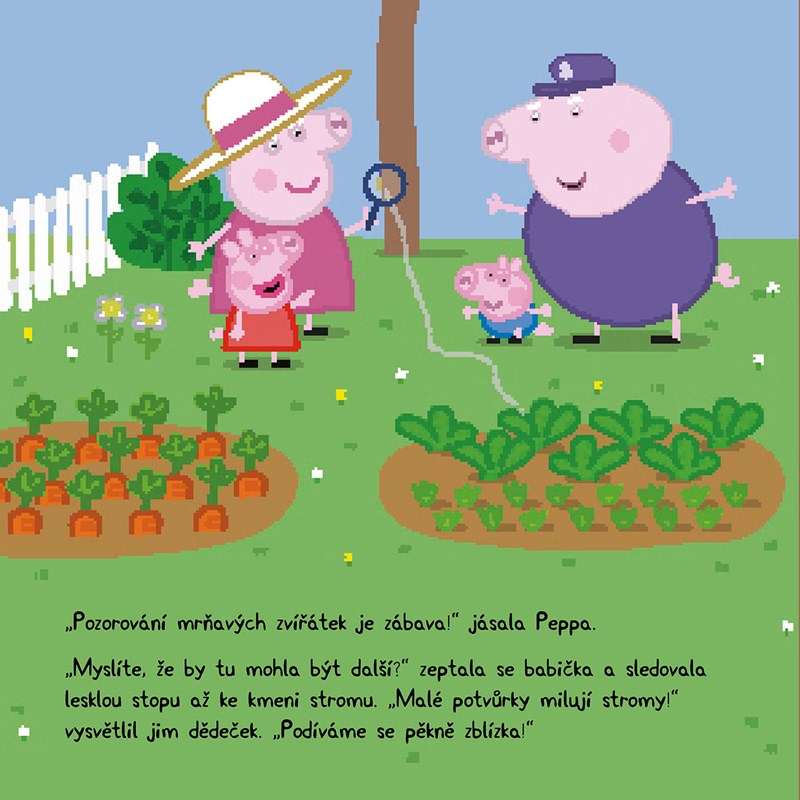 Peppa s Tomem právě obědvali, když v jídle objevili malinkou berušku. Odnesli ji do zahrady, kde si všimli spousty dalších mrňavých zvířátek. Z téhle knížky na vás taky vykouknou!