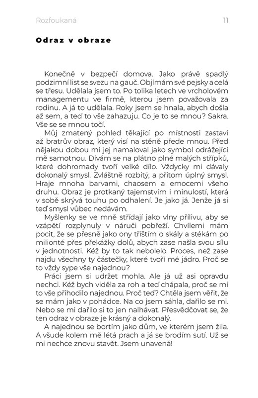 Rozfoukaná je psychologický dobrodružný román, který vás okamžitě vtáhne do života hlavní hrdinky. Žije zdánlivě dokonalý život, ale jednoho dne se probudí v divočině, kde se jí postupně hroutí vše, v co věřila a pro co žila. Prožijte spolu s ní silné příběhy zrcadlící vnitřní bolesti, touhy i strachy. Vydejte se společně do různých realit, míst i časů a zjistěte, co a proč si má na své životní pouti uvědomit.