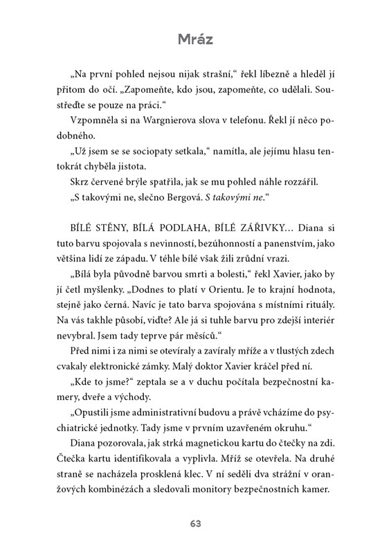 Ve stejnou dobu přijíždí do nedalekého Wargnierova institutu, jež se specializuje na mimořádně nebezpečné a duševně choré vrahy, psycholožka Diane Bergová, která postupně zjišťuje, že ředitel ústavu využívá neortodoxní metody. Detektiv Servaz na mrtvole koně brzy identifikuje DNA, která patří jednomu z chovanců Wargnierova institutu. Ústav je ale tak zabezpečen, že není možné, aby se někdo z chovanců mohl dostat ven. A za několik dní je nalezeno první mrtvé lidské tělo. Martin Servaz s kolegyní Irene Zieglerovou musí využít všech svých schoností k vyřeření děsivého tajemství…