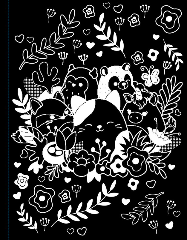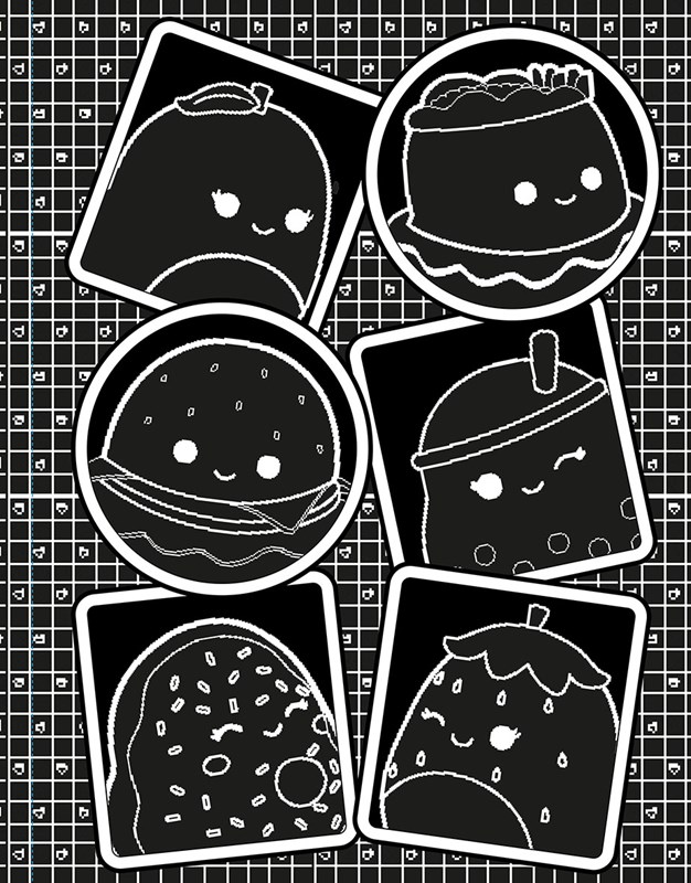 Je tu heboučká parta Squishmallows! Vezměte zvýrazňovače a oživte černé stránky těmi nejzářivějšími barvami! Tyhle skvělé omalovánky naruby vás zaručeně budou bavit!