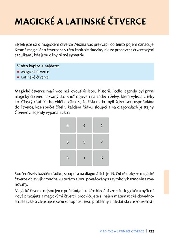 Matematika pro chytré hlavy zve zvídavé čtenáře a čtenářky každého věku na výpravu do světa čísel, tvarů i logických hádanek. Ukáže vám chytré triky pro určování obsahů, Pickův vzorec, měření planimetrem i metodu Monte Carlo, vezme vás mezi mnohostěny, archimedovská tělesa i do vyšších dimenzí. Dozvíte se víc o kritériích dělitelnosti, prvočíslech, společných násobcích a dělitelích, zlatém řezu, magických a latinských čtvercích, modulární aritmetice, Booleově algebře, slavných matematických problémech a mnohém dalším. Kromě výkladu na vás čeká bohatá zásoba úloh s řešeními, takže si můžete hned ověřit, jestli vám výpočty opravdu sedí. Naučte se kouzlit s čísly, jak to nedokáže ani Hermiona.
