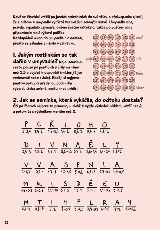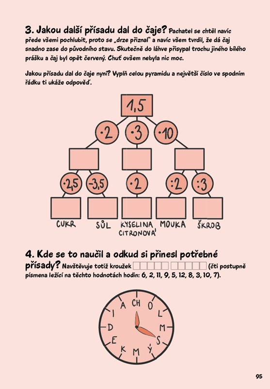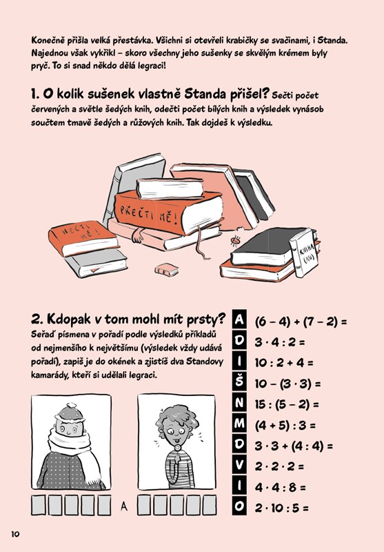 Pusťte se spolu s ním do řešení zapeklitých, téměř detektivních rébusů, a odhalte záhadu zmizelé fixy, snězené svačiny nebo rudé skvrny. Potřebovat budete matematiku a logické uvažování, ale nebojte. Pokud se dostanete do slepé uličky, myšák vám napoví, jak z ní ven.