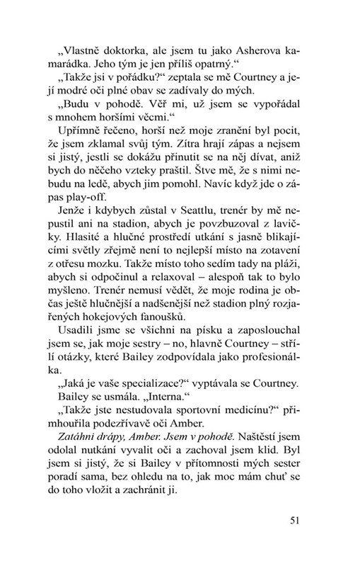 Je vtipná a milá, a když konečně po dlouhé době můžu být zase sám sebou, zjišťuju, že hradby, které jsem si kolem sebe vybudoval, se hroutí. Jenže Bailey tvrdí, že žádný vztah nehledá! Přesto jsem pevně rozhodnutý to nevzdat a být pro ni víc než jen zábavný milenec na jeden týden, který si podruhé – tentokrát kvůli ní – natáhne tříselný sval.