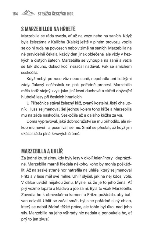 Vydejme na výpravu po horách a kopcích České republiky. Najdeme na nich nejen divukrásnou přírodu, ale můžeme si poslechnout i mýty a vyprávění z dávných časů. Každé pohoří má svého ochránce – Krakonoše zná každý, ale kterým horám vládne třeba Hejmon nebo Kačenka? Ti všichni a mnozí další ožívají v této knize.