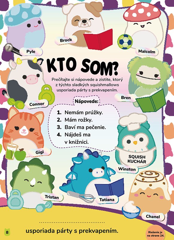 Pridajte sa k mäkučkej partii! Táto knižka je plná super jemnej zábavy. Nájdete v nej viac ako 100 samolepiek, kartónové časti na tvorenie, roztomilé hádanky, vyrobíte si sladké písacie potreby, rekvizity na selfie, rámčeky na obrázky a veľa ďalšieho, aby ste sa mohli poriadne vyblázniť s týmito roztomilými Squishmallows.