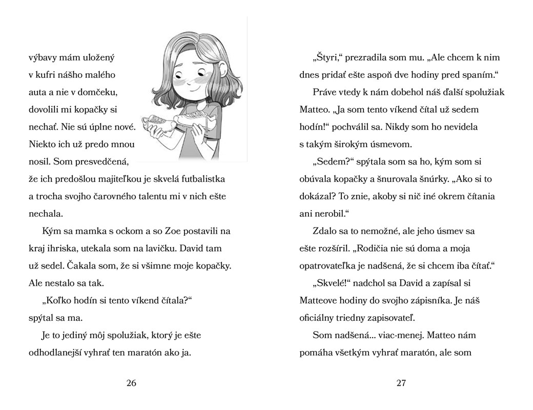 Lucy sa v škole zapojí do čitateľského maratónu, no doma sa na čítanie nemôže ani trochu sústrediť. V ich minidomčeku nie je totiž nikdy ticho. Ocko pozerá televíziu, mladšia sestra Zoe žuje žuvačky, nahlas vyfukuje bubliny, a dokonca ukazuje ich dom náhodným okoloidúcim. Má to však jeden háčik - ak chce Lucy vyhrať, nesmie prestať čítať.