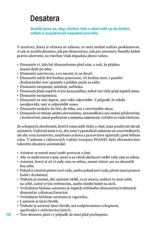 Zdena a Václav Fleglovi vedli Dismanův rozhlasový dětský soubor plné čtvrtstoletí. Odstup deseti let jim nyní umožňuje nejenom ohlédnout se za tímto obdobím, ale také zaznamenat další životní kroky řady vlastních svěřenců. Do beletristicky pojatých poznámek a vzpomínek pak zároveň vstupují i jednotlivci, kteří historii souboru spoluvytvářeli v předchozích obdobích. Autoři se s využitím mnoha fotografií a dokumentů snaží mimo jiné dobrat podstaty a svébytného milieu souboru, jež se obdivuhodně přelévají z generace na generaci, ačkoliv se vnější podmínky i „osoby a obsazení“ proměňují.