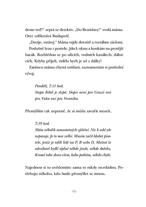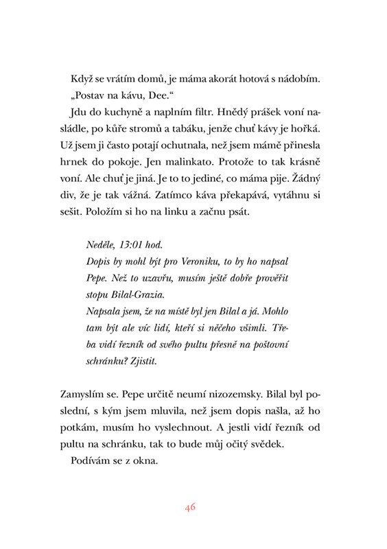 Devítiletá Deetje bydlí se svojí maminkou v bytovce. Jednoho dne nalezne na ulici dopis. Jméno a adresa jsou přeškrtnuté. Je od někoho, komu někdo hodně chybí. O tom Deetje něco ví. Vůbec se své mámě nepodobá, proto si myslí, že musí být adoptovaná. Rozhodne se, že dopis doručí správné osobě, a do pátrání zapojí i chytrého kamaráda Vita a taky Kevina. Všude jsou nějaké stopy, jenže každá odpověď přináší další otázky – až se na povrch prodere i ta nejdůležitější otázka: kdo jsem já?