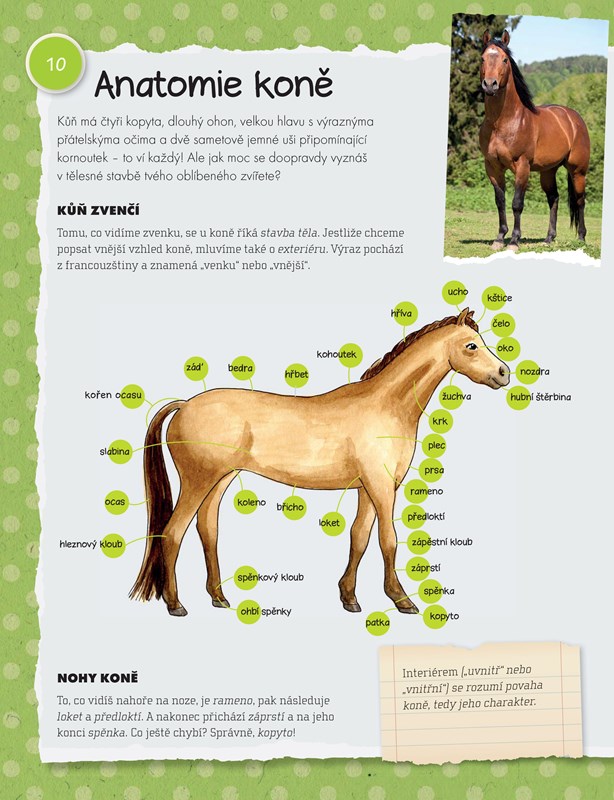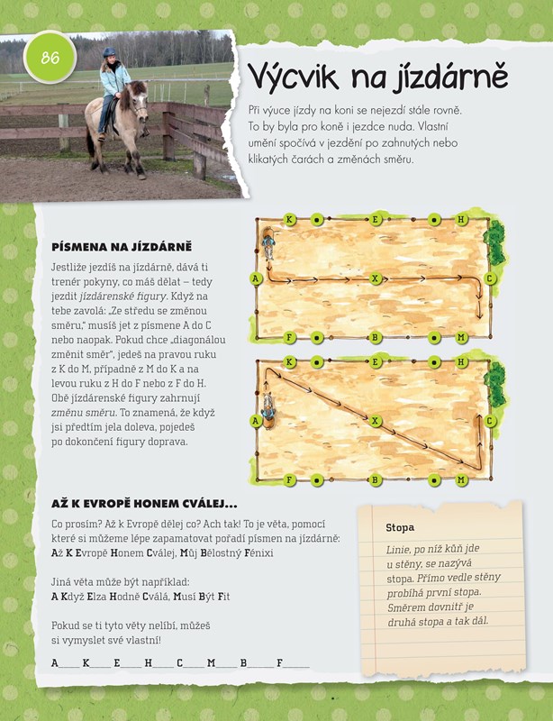Jsi-li opravdový fanoušek koní, pak je tato kniha přesně pro tebe! Najdeš v ní všechny důležité informace týkající se koní, jejich chovu a anatomie, potřebného vybavení, vhodné péče a ještě mnoho dalšího. Kniha ti odpoví na spoustu otázek počínaje tvou první jezdeckou hodinou až po případnou účast na závodech. Tak neváhej a vstup do světa koní a poníků!