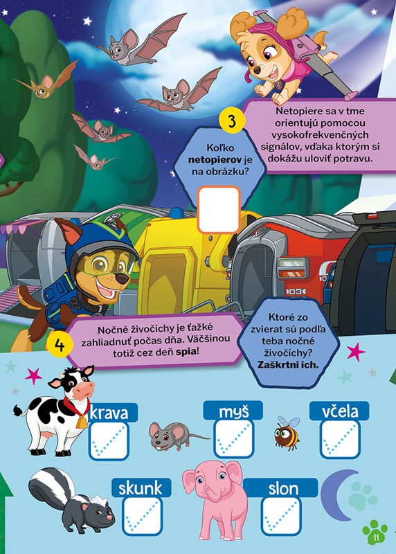 Vydajte sa s Labkovou patrolou na ďalšie úžasné dobrodružstvo v tejto skvelej knižke plnej napínavých úloh! Pridajte sa k šteniatkam a dozviete sa niečo nové o zvieratkách, a nielen o tých z Adventure Bay. Zájdete na farmu, zoznámite sa s nočnými tvormi, ktoré po zotmení opúšťajú svoje brlohy, a vyriešite všetky zložité záhady. Nudiť sa určite nebudete!