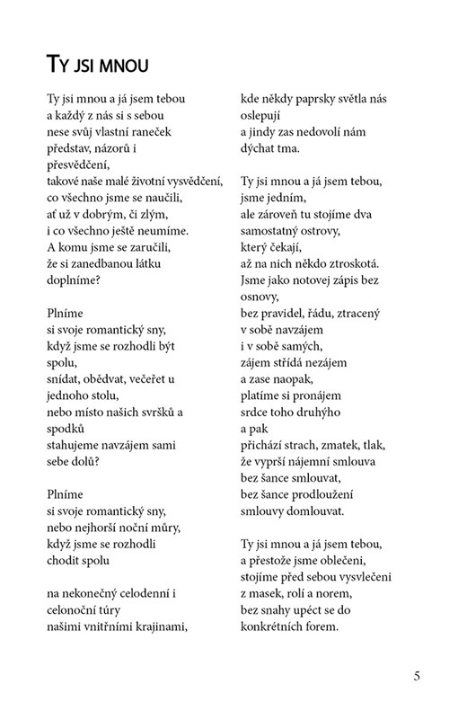 Co když může být poezie i zábava? Pokud se rádi koukáte pod povrch palčivých témat i pod povrch sebe samých, tato básnická sbírka, doplněná o fotografie a otázky na tělo, je možná právě pro vás.