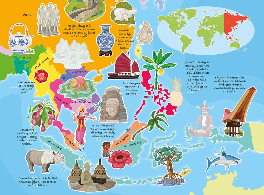Doplň do mapy světa nálepky a seznam se s nejdůležitějšími památkami a nejzajímavějšími i nejvzdálenějšími místy naší planety.