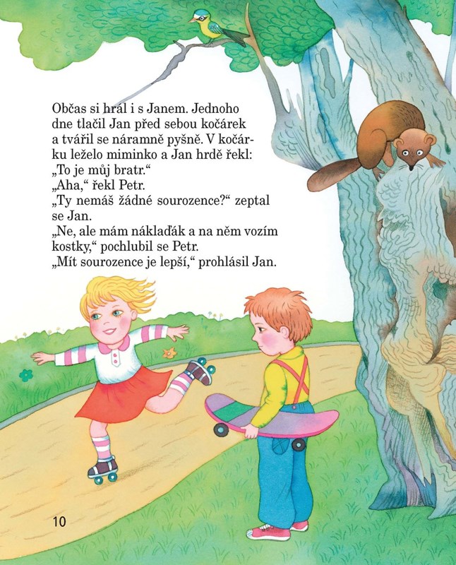 Dva drobné příběhy o sourozencích Petrovi a Leně, které věnovala Astrid Lindgrenová prvním čtenářům, jsou veselá a půvabná vyprávění o jednoduchých věcech. Jsou lindgrenovsky prostá s velkým kouzlem - přesně tak, jak to mají rádi autorčini čtenáři.