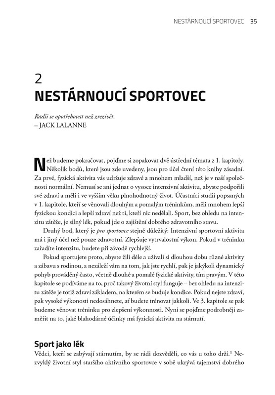 Stárnutí nemusí nutně znamenat, že musíte zpomalit. Známý americký sportovní vědec a trenér Joe Friel na základě nejnovějších výzkumů a praktických zkušeností z práce s nespočtem úspěšných sportovců ve všech věkových kategoriích vysvětluje, jak si sportovci mohou udržet kondici a úspěšně závodit i po padesátce. Jeho čtenáři se podrobně dozvědí, jak musí změnit svůj trénink, aby se obrnili proti účinkům stárnutí a prodloužili si tak kariéru o desítky let a nadále dosahovali vítězství, skvělých časů a umístění.