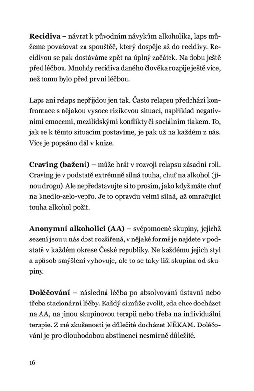 Jak se daří autorce vítězného blogu Magnesia Litera 2019 s odstupem jednoho roku od chvíle, kdy vydala úspěšnou knihu o svém boji se závislostí na alkoholu? Jaký je „střízlivý“ život abstinující alkoholičky? Michaela vypráví o tom, jak obtížné je abstinovat ve společnosti, kde je pití společenská norma. Otevřeně líčí kritické momenty své abstinence, svěřuje se s čerstvou zkušeností dvojnásobné mámy a zveřejňuje také příběhy dalších abstinujících alkoholiků o jejich cestě za nezávislým a plnohodnotným životem, který nenaplňuje jen nekonečná hladina alkoholu.