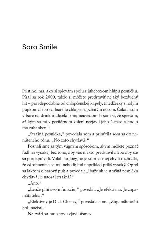 Je piatok večer v bare na kampuse v Berkeley, jeseň 2000, a Percy Marksová zase filozofuje o hudbe. V jukeboxe hrá Hall and Oates a Percy, ktorá nemá talent na hudbu, len veľa názorov na ňu, nedokáže prestať analyzovať pieseň, oddáva sa tomu, čo je jej najotravnejším zvykom.