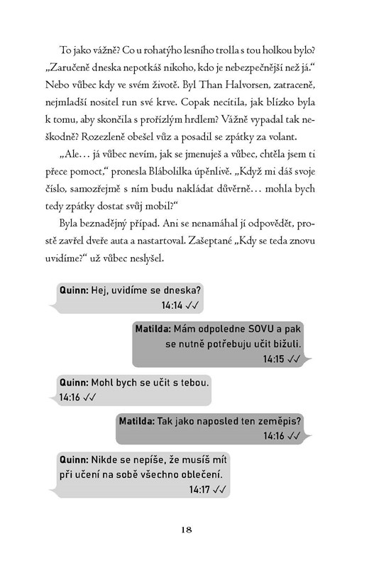 Pokud Quinn po svých dobrodružstvích ví něco jistě, pak to, že Matilda je jeho velká láska – bez ohledu na to, jak šílená její rodina může být. Oba by se měli soustředit jen na nadcházející školní ples, jenže je tu to záhadné otevření hvězdné brány, při němž má Quinn jako domnělý Vyvolený zachránit svět. A také prchající černí elfové, kteří hledají úkryt, a tajuplné orákulum, které v rozhodujících chvílích neustále mizí. Zkrátka docela normální úterý. Pak se ale Matilda sama dostane do hledáčku mocných nepřátel. Spolu s Quinnem musí rozluštit tajemství, která mohou rozhodnout mezi životem a smrtí…