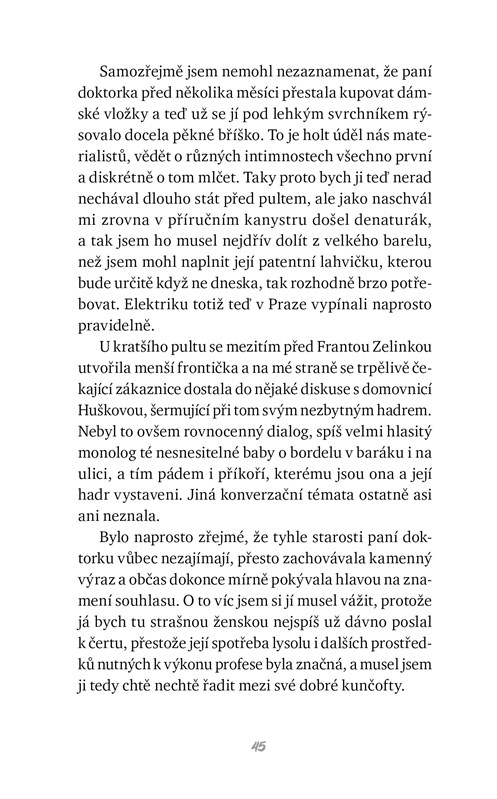 Co přežije všechny režimy? Švábi a byrokracie. A taky Ludvík Souček, majitel drogerie v pražské Veletržní ulici. Jenže když za pultem strávíte půl století, zjistíte, že si k vám zákazníci chodí pro víc než jen pro barvy a čistidla. Obchodem mu prošly tisíce zákazníků: někdo emigroval, jiného zavřeli, někdo skončil v koncentračním táboře, jiný jako předseda uličního výboru. A Ludvík? Ani hrdina, ani přisluhovač. Jen pozorovatel, co ví, že svět je jako jeho drogerie – výloha se mění, ale obsah zůstává stejný. Muž za pultem a jeho svérázná kronika doby od autora předlohy televizního seriálu Volha.