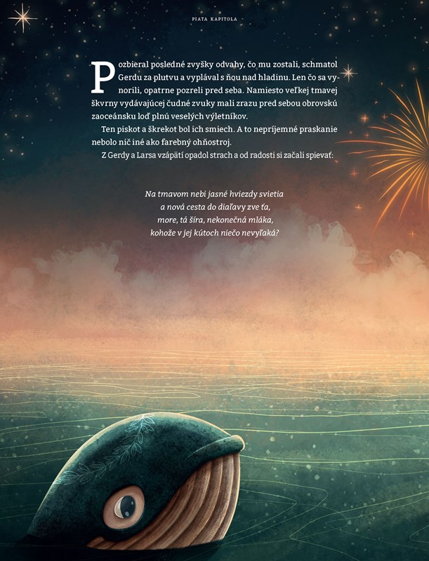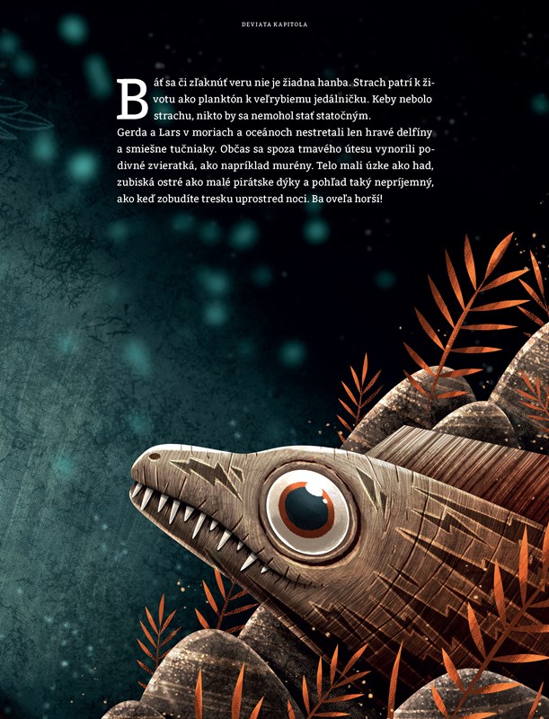 A tak zvedavá Gerda s bratom naberú odvahu, prechádzajú hlbokým oceánom, plytkými morami aj neprebádanými lesmi chalúh a rias, aby našli pokračovanie ich obľúbenej uspávanky. Mala Lisbet pravdu alebo im len natárala báchorky?