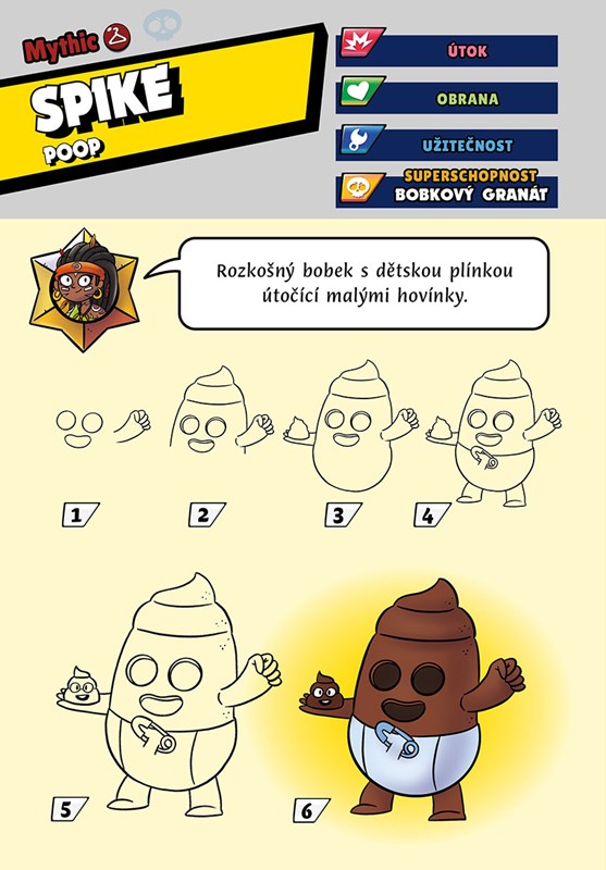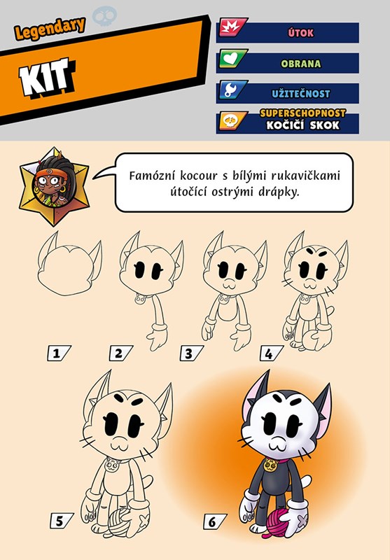Tak hraní Brawl Stars na mobilu nebo tabletu by ti šlo, ale co si zkusit nové brawlery a jejich skiny třeba taky nakreslit? Neboj, není to žádná věda a díky téhle jedinečné výtvarné knize se v 6 jednoduchých krocích naučíš tvořit fakt cool brawko obrázky! Navíc se o jednotlivých „postavách“ dozvíš také spoustu zajímavostí, o kterých jsi zaručeně ještě neslyšel, a nebudou chybět ani vtipné hlášky!