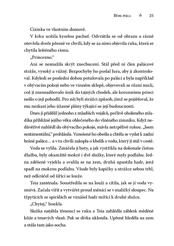 Teia Carthanová už dávno odložila morální zásady – aby přežila, udělá téměř cokoli. Ustála smrt rodičů, hněv Rady i vražedné útoky nevlastního bratra Jury, budoucího krále Erisie, který ji kvůli vzácné schopnosti ovládat dva živly vidí jako hrozbu. Když se začnou objevovat známky povstání, Teia pochopí, že má šanci: infiltrovat rebely a vyměnit svůj život za ten jejich. Její pochyby ale sílí. Možná by Zlatý palác i monarchie vážně měly skončit v troskách. Je tu však alternativa… Co kdyby na trůn usedla ona?