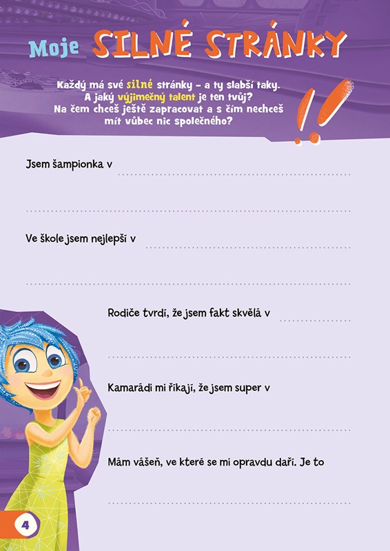 V Deníku emocí najdete s pomocí oblíbených postav z filmů "V hlavě" místo pro své smutky, radosti a nejen to. Popište je nebo nakreslete a hned si je ochočíte a pochopíte, jak vám mohou být v různých situacích prospěšné.