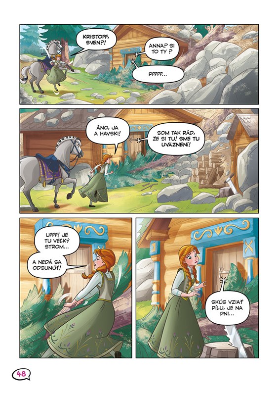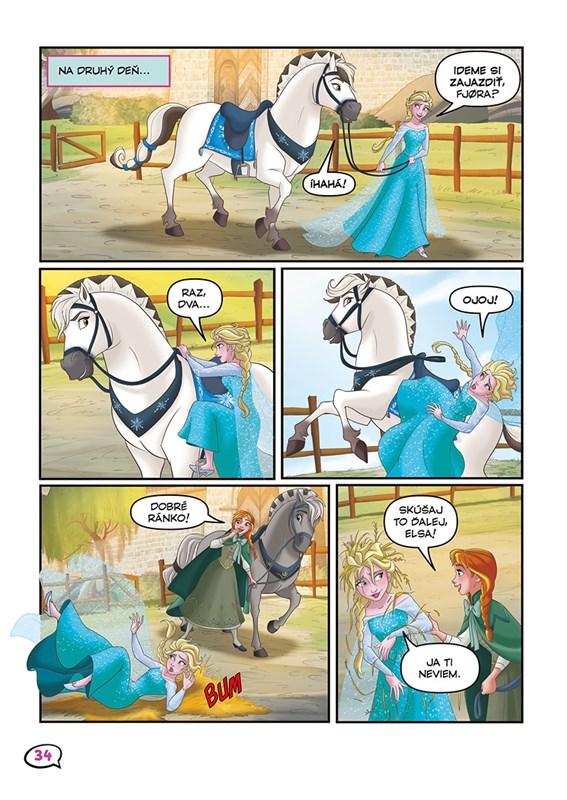 Anna s Elsou milujú kone a jazdu na nich! Preto sme pre vás pripravili novú knižku komiksových príbehov, v ktorej sa dozviete, ako arendellské princezné prišli k svojim koňom a aké príhody s nimi zažili. Často to boli zábavné zážitky, niekedy aj napínavé, ale vždy sa skončili dobre!