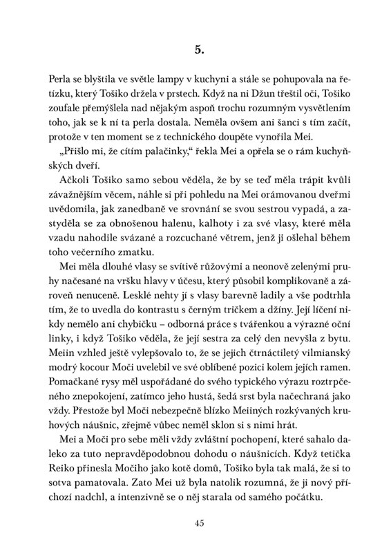 Tošiko, Džun a Mei nespojuje příbuzenské pouto, ale touha pomstít smrt ženy, která jim byla vším. Haru, císařovnin syn, utíká od politiky ke Slunečním duchům, záhadným bytostem, které vidí pouze on. A Teo, nelegální přistěhovalec, touží jen splynout s okolím – jenže v gangu i tak přitahuje pozornost. Jejich světy by se nikdy neprotnuly, kdyby Dračí perla nepřepsala pravidla hry.