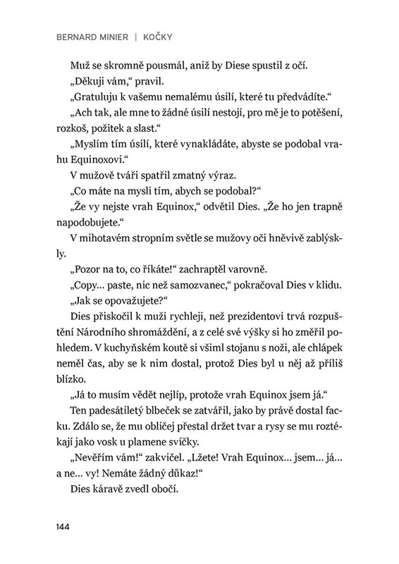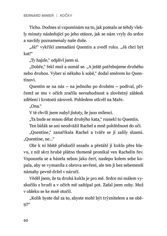 Dva mladé páry fascinované temnou turistikou se vydávají na místa spojená s tragédiemi. Letec se během první světové války setkává s prastarou nenávistnou entitou. Zvířata se osvobodí od nadvlády lidí. Pohledný kněz ukrývá temné tajemství. Kočky nejsou tím, čím se zdají být. V patnácti povídkách mistra napětí Bernarda Miniera se vydáte do nejtemnějších míst lidské duše i do koutů světa prostoupených metafyzickým zlem. Připravte se na plíživý děs, který vás bude pronásledovat ještě dlouho po dočtení.