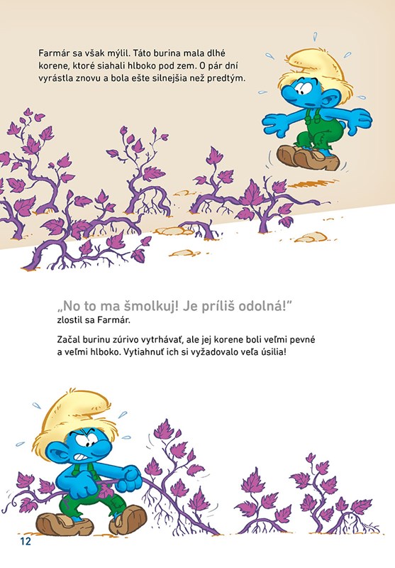 V prvom príbehu sa dočítate, ako šmolko Farmár bojoval s úpornou burinou. A kto nakoniec zvíťazil? Druhý príbeh je o tom, aké ťažké je tešiť svojím umením ostatných. Šmolko Muzikant by mohol rozprávať! V treťom príbehu sa dozviete, že byť nenásytný sa určite nevypláca, však Maškrtník? A konečne v poslednom príbehu zistíte, či sa Šmolinke splnilo jej prianie.